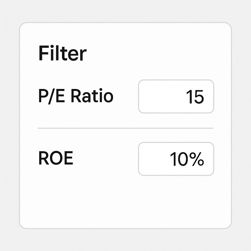 - 정렬: ROE 내림차순 → PER 오름차순 → PBR 오름차순 순으로 보며 질 낮은 저PER을 제거합니다.